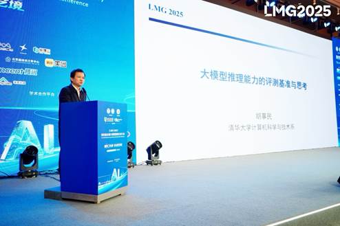 开幕式后,中国科学院院士、清华大学胡事民教授以《大模型推理能力的评测基准与思考》为题作特邀报告,整场报告不仅系统呈现了前沿科研成果,更体现了对人工智能发展浪潮的深刻洞察。胡院士的分享,为推动国产大模型生态繁荣与构筑新一代工业革命的算力基础,提供了重要的理论指引与实践参考。